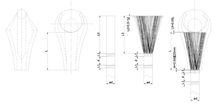 5.4 綁扎鋼絲繩長度L0為錐形套體長度L,綁扎