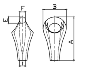 產(chǎn)品編號 | 適用鋼絲繩直徑(mm) | 主要尺寸(mm) | 破斷載荷KN | 適配C型快速卸扣規(guī)格 | 裝卸作業(yè)次數(shù) | 在較好潤滑條件下卸貨噸位 | 報廢尺寸(E)mm | 報廢尺寸(F)mm | ||||